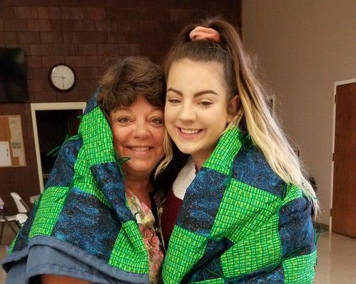 Another project that is always appreciative of help is the making of senior year quilts. Each graduating senior in our congregation receives a quilt. They are encouraged to select the colors and help by tying the quilt that has been made for them.